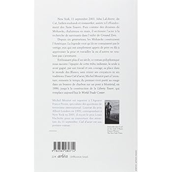 Emballée ! Un livre riche qui m??a prise aux tripes et qui m??a incité à aller fouiller et creuser sur le net pour vérifier des infos et apprendre plein d??autres choses. Passionnant.« Un pan de l'histoire américaine très intéressant à découvrir et qui fait regarder les buildings et les ponts sous un tout autre angle. »A travers plusieurs périodes, l??auteur rend hommage aux ironworkers, ces charpentiers du fer chargés de construire ou démolir les gratte-ciel ou les ponts les plus hauts du monde.Les chapitres alternent l??histoire de plusieurs personnages de la même famille de Mohawks, tribu indienne du Canada, dont sont issus des générations d??ironworkers.3 périodes, 3 histoires prenantes.C??est avec John que démarre le livre. Nous sommes en 2001. Septembre 2001. Le 11.Un avion survole le chantier où travaille John. Si l??on connait le tragique événement qui s??en est suivi, on sait moins à quel point les secours ont été compliqués, difficiles moralement, physiquement, et ce qu??ils ont entrainé comme dommages collatéraux quant aux maladies diverses qui en ont résulté et qui se poursuivent encore de nos jours sur tous ceux qui ont prêté main forte.Les ironworkers ont fait parti de ses nombreux secouristes.C??est eux qui ont déblayé les décombres, découpé l??acier, les milliers de tonnes de poutres tordues et de ferraille entassées à la place des tours pour ouvrir des passages, des accès aux pompiers.L??auteur nous fait vivre de manière poignante ces journées, ces mois qui ont suivi la catastrophe. Le feu, la chaleur, le danger, l??espoir, la fatigue, la colère, la frustration, la poussière, l??horreur? jusqu??aux chiens qui refusaient de retourner faire les recherches et les stratagèmes mis en place pour les motiver à nouveau.Si en 2001, John est chargé de démolir les Twin Towers, c??est Jack, son père, qui les avait construites dans les années 70.Retour en arrière donc avec les chapitres qui nous racontent la construction de ces 2 tours hors du commun à la structure si particulière pour l??époque mais qui malheureusement a contribué, entre autre, à leur effondrement.On remontera plus loin dans le passé, au début des constructions des grands ponts avec l??histoire de Manish, ancêtre lui aussi de la famille de Jack et John.Nous sommes projetés dans les années 1884, au siège de Karthoum en Egypte, épisode dramatique de la guerre coloniale britannique où de nombreuses tribus telles que les Iroquois et les Mohawks, excellents navigateurs, furent sollicités pour remonter le Nil pour réapprovisionner les troupes en nourriture et armement.Puis nous sommes transportés en 1907 lors de la construction du formidable pont de Québec qui connaitra une tragédie d??envergure lui aussi.Une centaine d??ouvriers sur le pont le jour de la catastrophe, 76 morts, dont 33 des 38 Mohawks qui y travaillaient. Un drame pour la tribu des Mohawks qui leur fera prendre une décision capitale: jamais plus d??une équipe sur un même chantier afin que jamais plus il n??y ait de tombes collectives et autant de veuves et d??orphelins en même temps.Manish qui fera parti des rescapés sera injustement banni de Kahnawake, la réserve où vivent les Mohawks, jetant l??opprobre sur ses descendants.Toujours avec John, nous poursuivons la route jusqu??en 2011 et la construction de la One World Trade Center. « Le plus haut bâtiment de l??hémisphère Nord. »Un bel hommage à ces skywalkers, les marcheurs du ciel, issus de la tribu des Mohawks réputés pour ne pas avoir le vertige alors que ce n'est que pure légende.